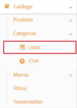 Em seu painel Administrativo selecione a opção Catálogo, logo após “Categoria” e “Listar”