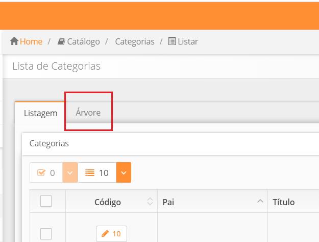 Ao abrir a Listagem de Categoria aperte a aba “Árvore” que se encontra logo ao lado de “Listagem”: