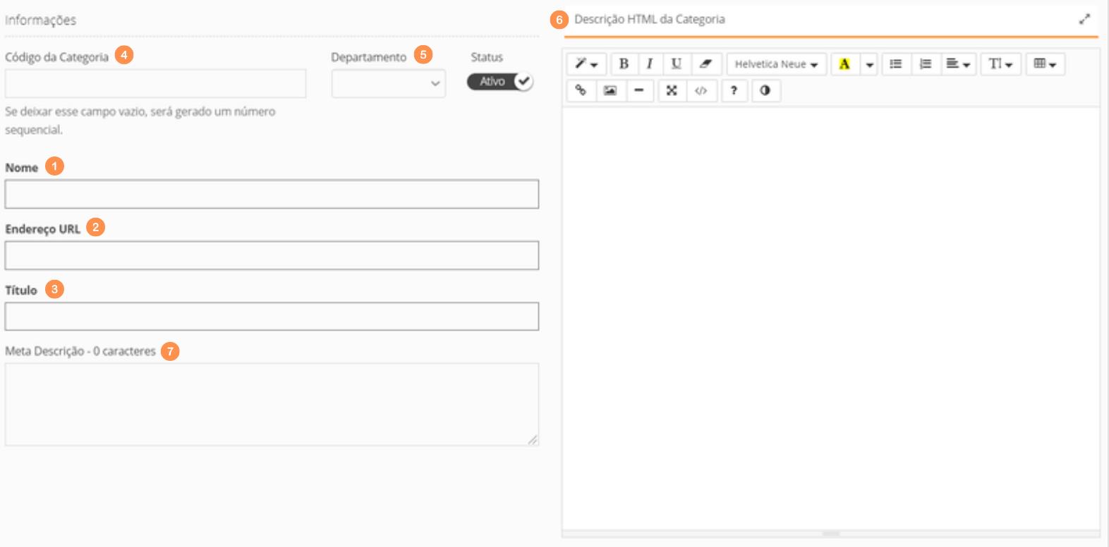 Em seu painel Administrativo selecione a opção Catálogo, logo após “Categoria” e “Criar”