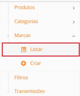 Em seu painel Administrativo, no menu lateral selecione a Opção "Catálogo", logo após "Marcas" e por último Listar