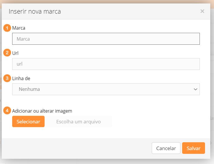 - A função “Linha de” só será utilizada se este cadastro for uma variante de uma marca já existente, ou seja, uma linha muito específica (por exemplo: segunda linha, linha especial, linha comemorativa), se não for caso, deixe a opção "Nenhuma"