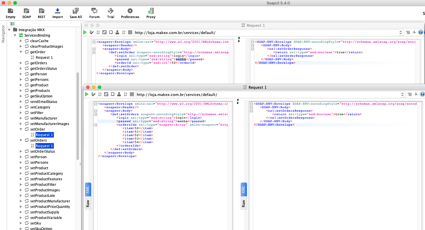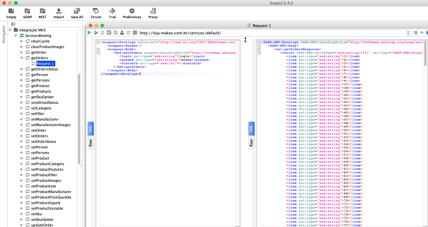 O método: getOrders (no plural) retorna os códigos (ids) dos pedidos que precisam ser baixados para o ERP, além dos parâmetros de login e senha, podemos informar o: statusId, nesse caso irá retornar apensa os pedidos do status informado. Caso o statusId for vazio ou não informado, retornará todos os pedidos independente do status. Os statusId da MKX são configurados como padrão conforme a lista abaixo, porém o cliente pode criar novos status, nesse caso precisa ser solicitado a MKX os novos status.- statusId / Nome
