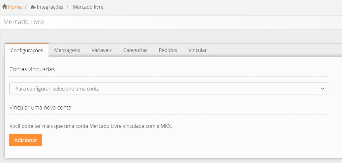 Ao abrir a tela acima, clique no botão “Adicionar” - você será redirecionado a uma tela de login do Mercado Livre, logue, realize as permissões e sua conta já estará integrada com a plataforma da MKX.
