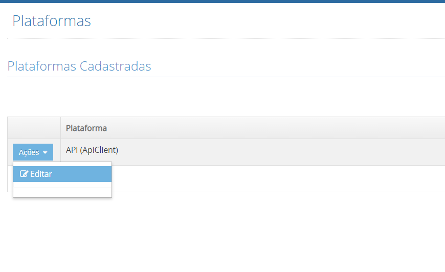 Na opção API (ApiClient) clique em "Ações" e logo após em "Editar":
