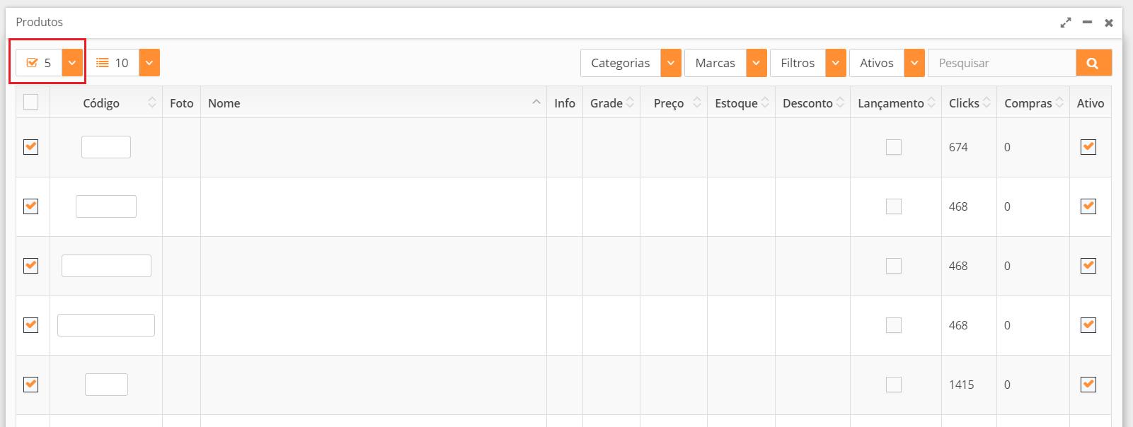Em massa, você irá selecionar os devidos produtos na Lista de produtos e após este procedimento se direcione a tela que enumera a quantidade de produtos selecionados, destacada na imagem abaixo:
