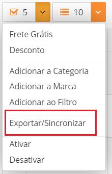 ao lado do número e abrirá o menu de configurações em massa, selecione a opção “Exportar/Sincronizar”:
