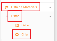 Acesse no seu ADMIN o menu “Lista de Materiais > Listas > Criar”