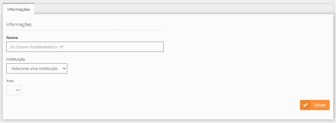 Na primeira tela que se abrir, insira o nome da lista conforme o exemplo, depois vincule à instituição já cadastrada anteriormente e o ano correspondente à lista e salve.